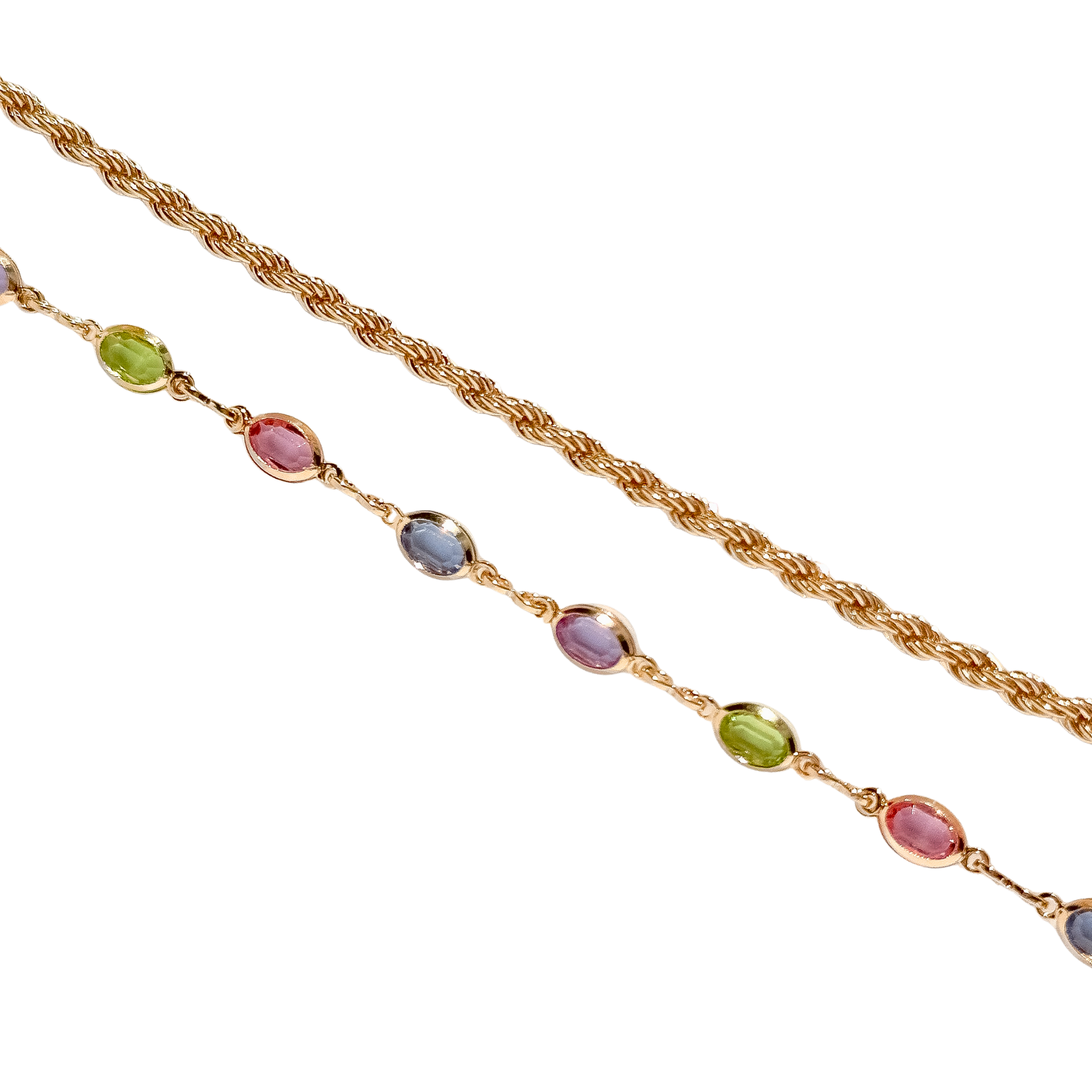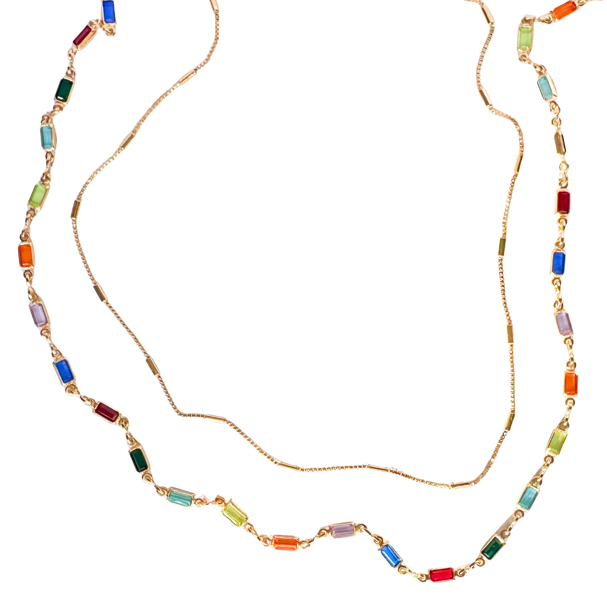 Circular Jewel-Toned Glass + Gold Filled Chain Necklace