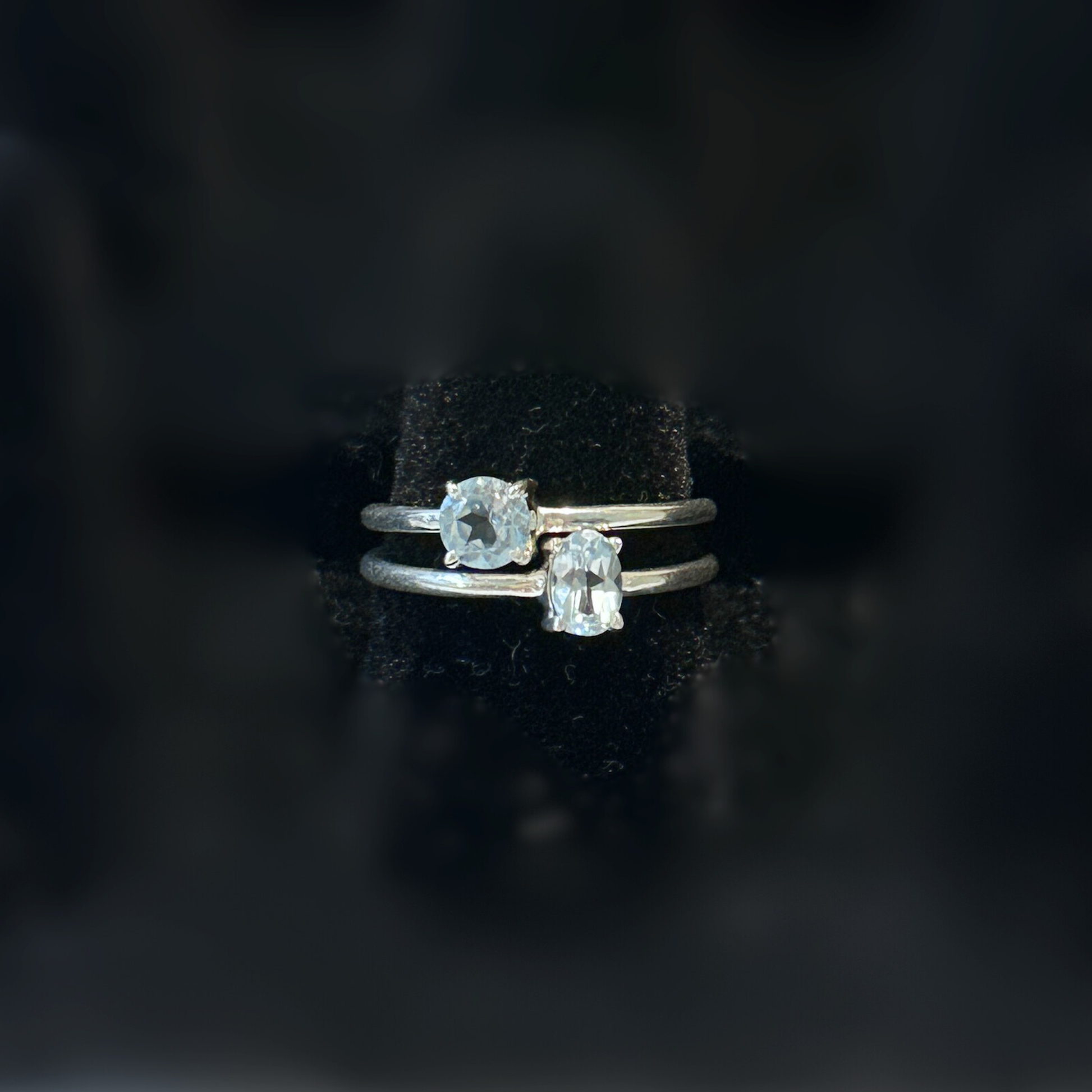 Natural aquamarine cut into a gorgeous faceted round cut with a minimalist solid sterling silver ring band. Beautiful on its own, or easy to stack!