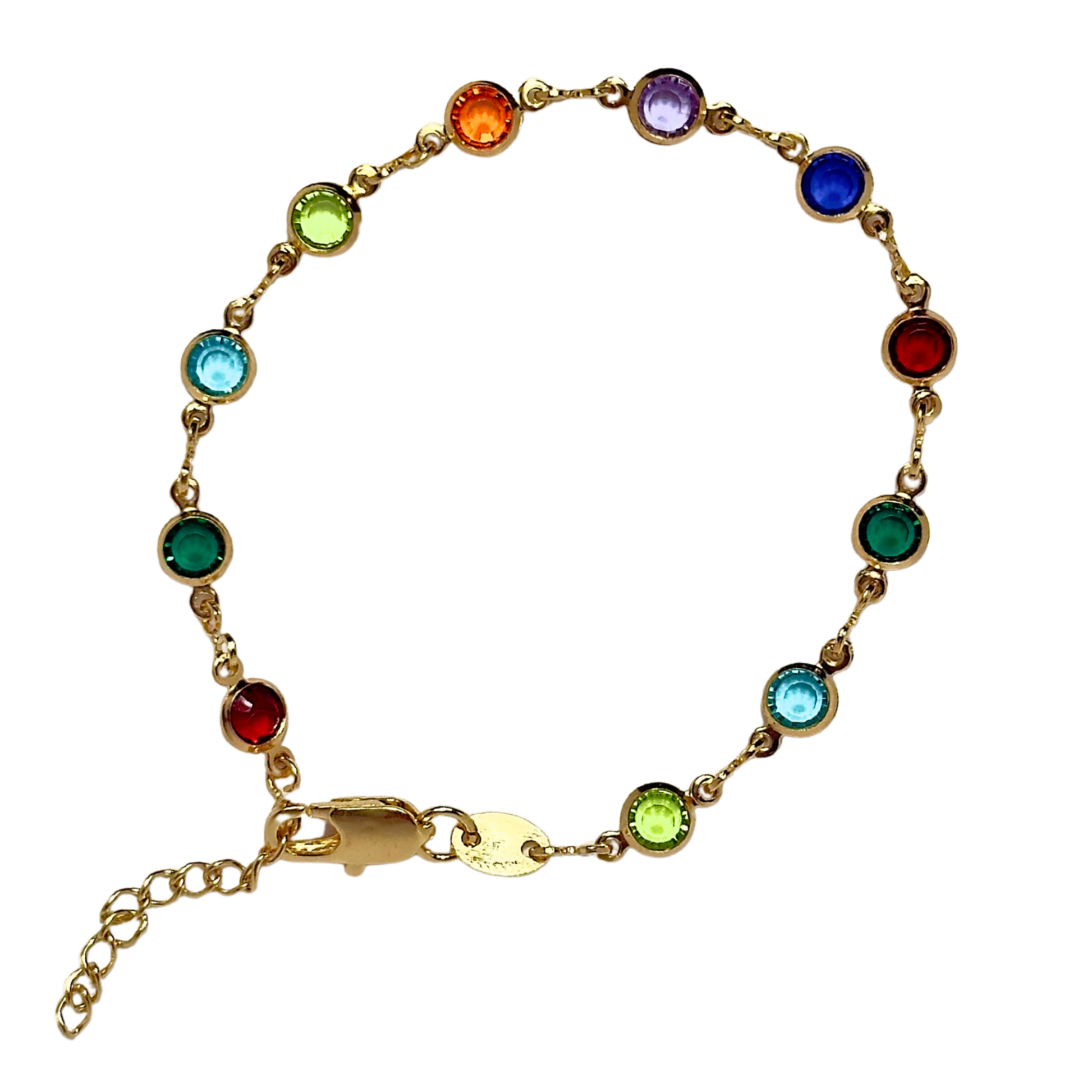 Circular Jewel-Toned Glass Gold Filled Bracelet