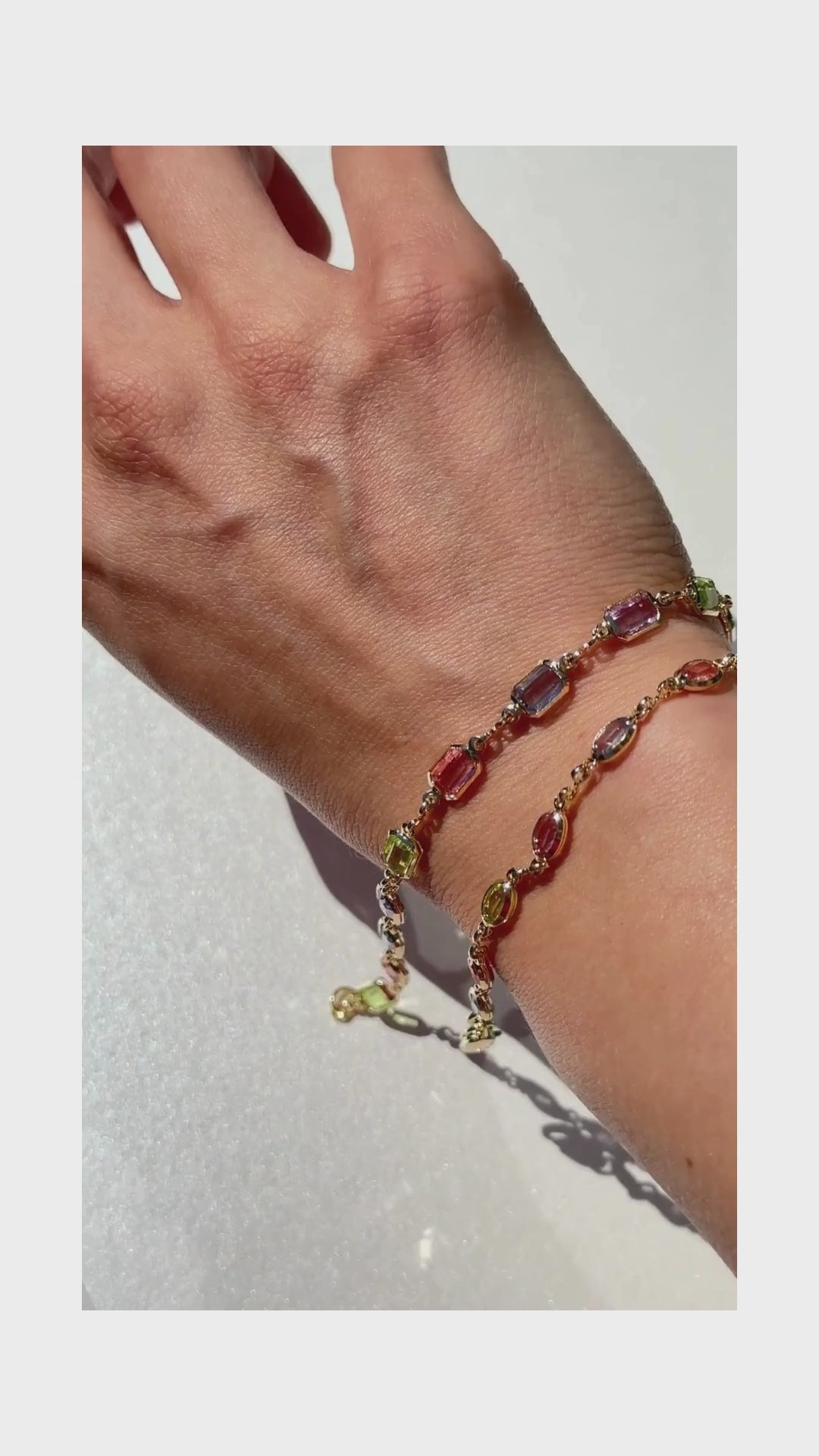 This bracelet has a gorgeous combination of pastel-toned oval glass with gold-filled components! Perfect for everyday wear on its own, or with a layered set.